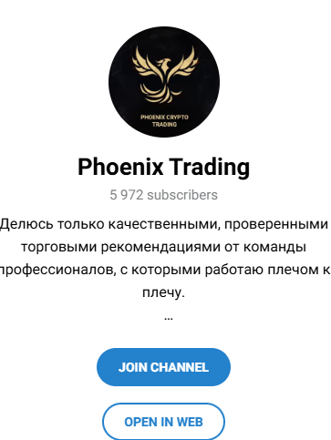 Канал Phoenix Trading публикует ежедневно: новости рынка, образовательный контент, аналитику альткоинов и отчеты об успешных сделках. Автор работает с криптовалютами на биржах и предлагает фьючерсную торговлю с плечом.