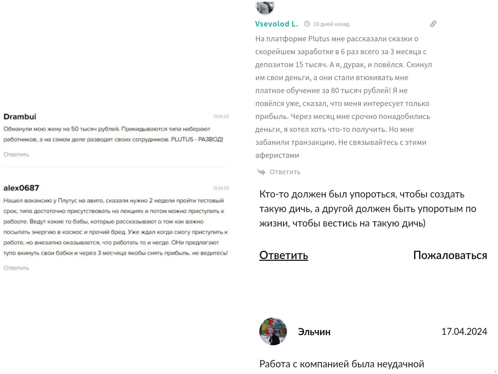 В Сети также есть негативные высказывания сотрудников о том, что компания обманным путем набирает работников и кидает на средства. Часто руководители проекта предлагают сотрудникам вкладываться в Plutus и ожидать пассивный доход.
