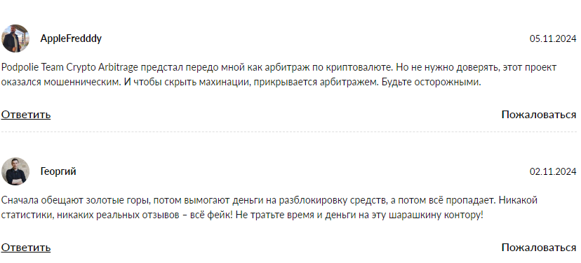 Обзор телеграмм-канала Podpolie Team Crypto Arbitrage: отзывы реальных пользователей о PoodpolieTeam, анализ деятельности и проверка «Подполи Тим Крипто Арбитраж» на скам