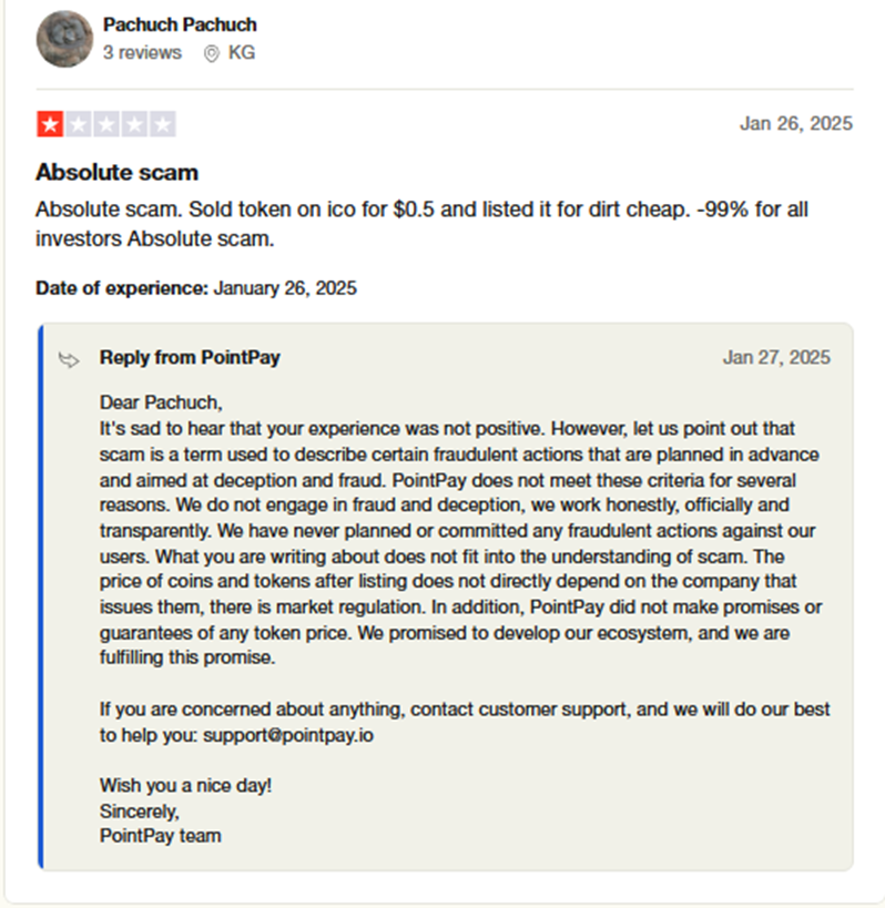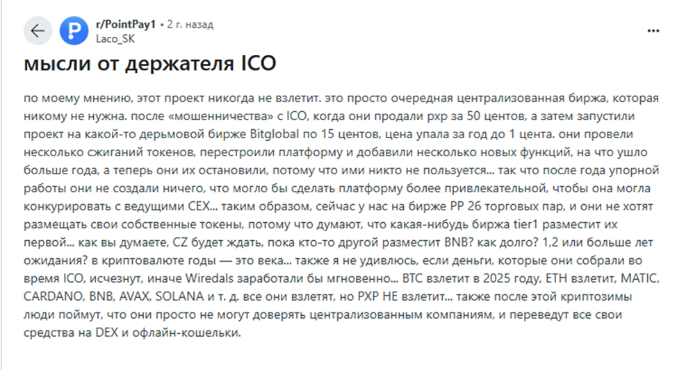 Некоторые трейдеры называют владельцев «Поинт Пэй» мошенниками, которые занимались махинациями с криптовалютой PXP. По их словам, умышленные действия команды платформы привели к убыткам тех, кто изначально поверил в проект.