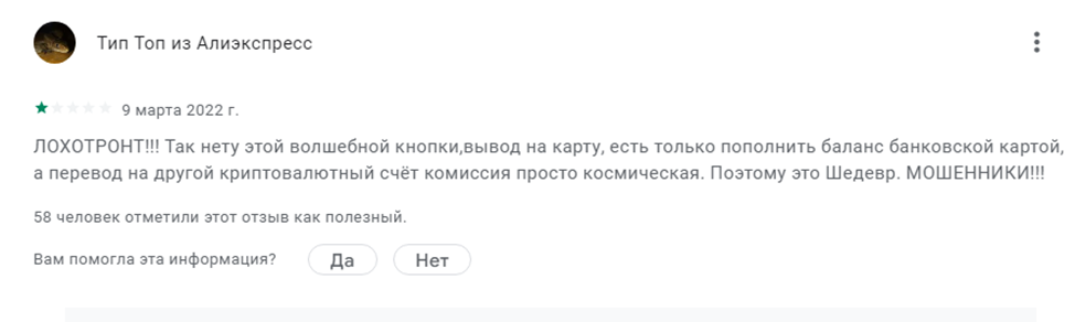 В отрицательных отзывах пользователи жалуются на блокировку счета, многомесячные ожидания вывода, отсутствие возможности получить деньги на карту.