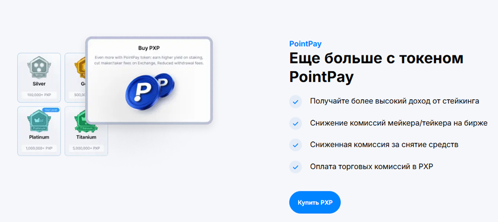 В рамках экосистемы Pointpay действует криптовалюта PXP. Его владельцы имеют право на сниженную комиссию, а также дополнительные льготы. Правда, для их получения потребуется соблюсти несколько условий.