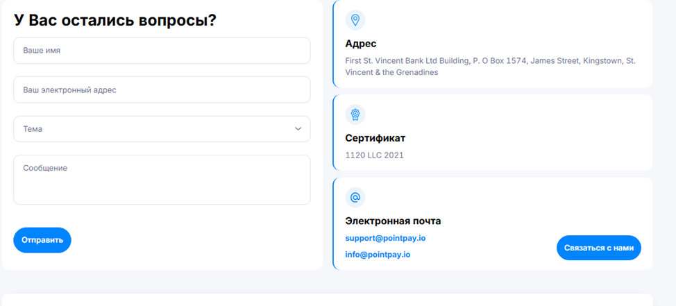- электронную почту Support Pointpay Io или Info Ppointpay Io;