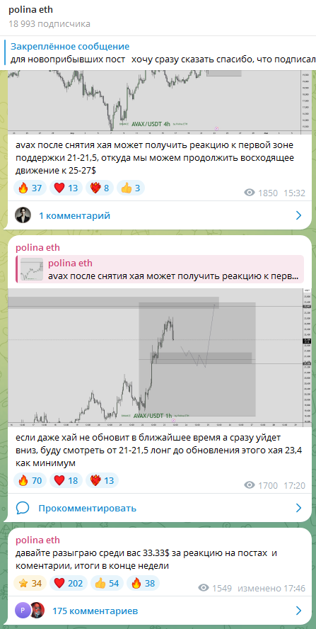В ленте известный в узких кругах эксперт выкладывает посты аналитического характера, где излагает свои мысли по поводу ситуации на рынке, личного отношения к изменениям цены цифровых активов. А также публикует торговые сигналы с точками входа/выхода.