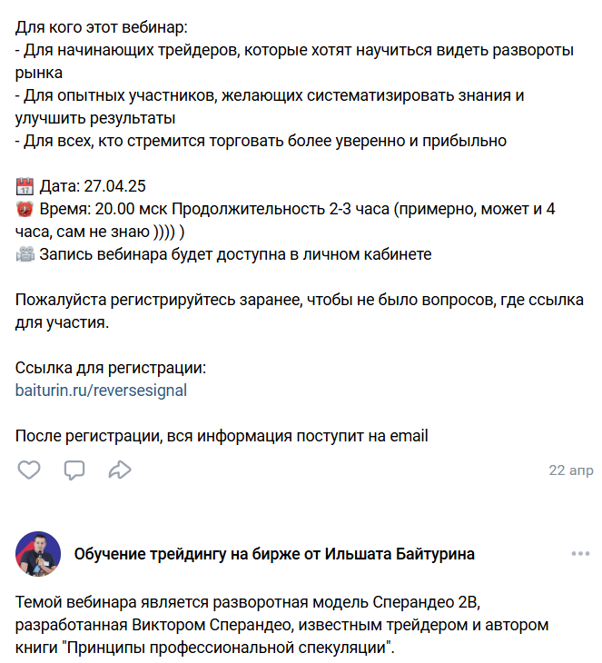 • «Комментарии». На май 2025 года на профиль подписано 17 человек, в нем люди, рассказывают о знаниях, которые получили, но не подтверждают успехи скринами от заключенных сделок.