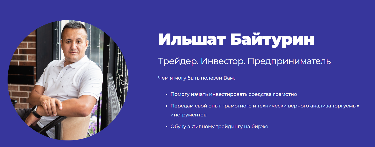 Мы проанализировали курсы Ильшата Байтурина «Полное руководство по разворотным сигналам» и деятельность наставника. Изучили мнения клиентов в профилях инвестора и на независимых ресурсах.
