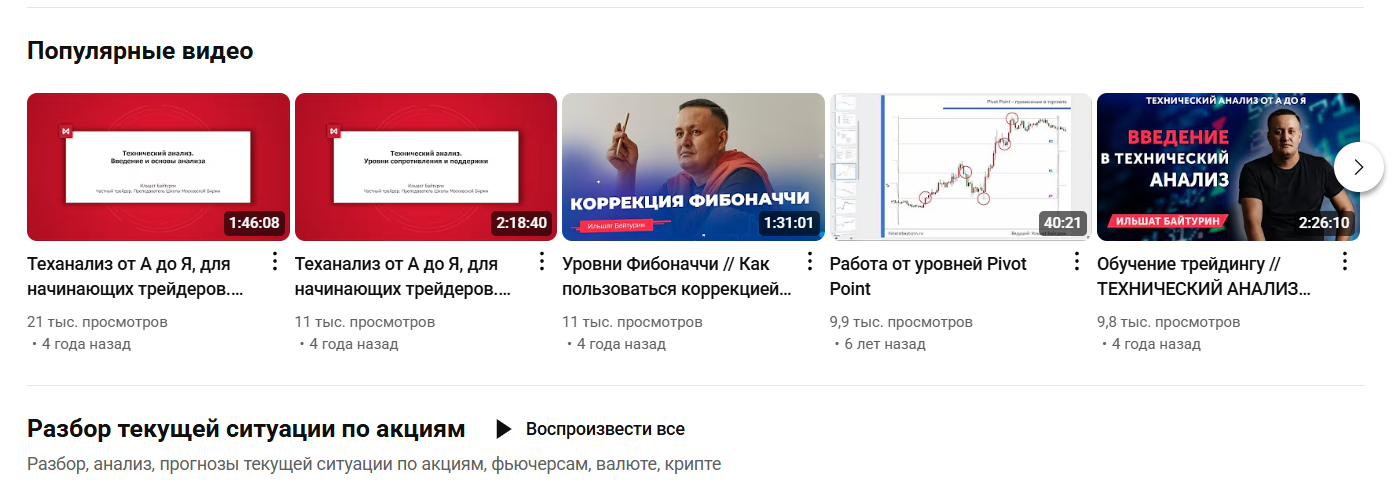 Наставник ведет каналы на платформе Rutube «Просто о трейдинге и инвестициях» и Youtube «Трейдинг с Ильшатом Байтуриным». Видеоролики на Рутубе набирают от 2 до 56 просмотров за полгода, видеопосты на Ютубе — по 11 000 просмотров за 4 года.