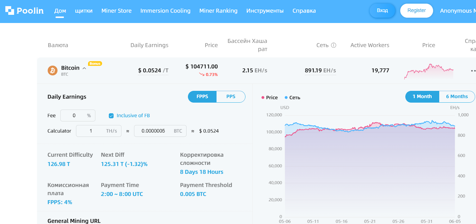 Автоматические выплаты на Poolin в Btc или EthW происходят ежедневно, но пользователи могут отключить эту функцию и выводить средства вручную. Минимальные суммы выплат варьируются в зависимости от криптовалюты, например, для Bitcoin минимальный порог составляет 0.005 Btc. Комиссии зависят от криптовалюты и выбранного метода, например, для Bitcoin при использовании Pps комиссия составляет 2.5%, а в случае с Handshake – 0%.