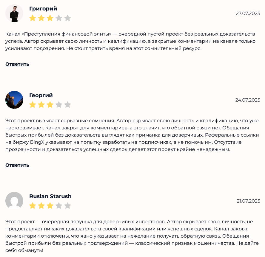 В основном трейдеры и инвесторы подчеркивают отсутствие квалификации, закрытые комментарии и бессмысленную аналитику, которая не приводит ни к чему, кроме потерь.