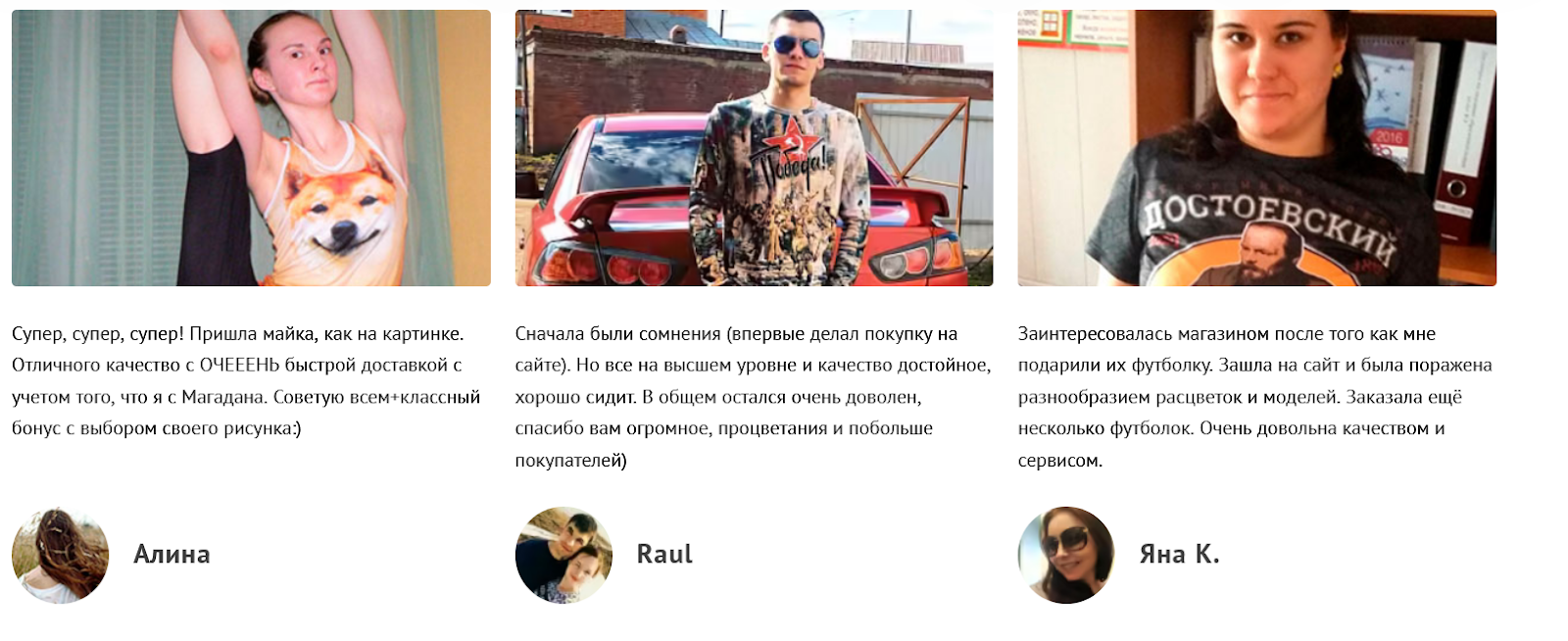 На веб-странице представлена большая коллекция доступных принтов, можно выбрать на свой вкус. Основатели проекта, как указано на сайте, используют для изготовления продукции хлопок высшего качества. Реализацию даже самой сложной идеи обещают за 72 часа.
