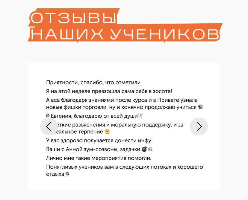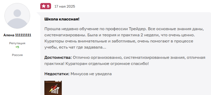 В первую очередь мы изучили отзывы на курс Профессия Трейдер Tradezone, размещенные на сайте самого проекта.