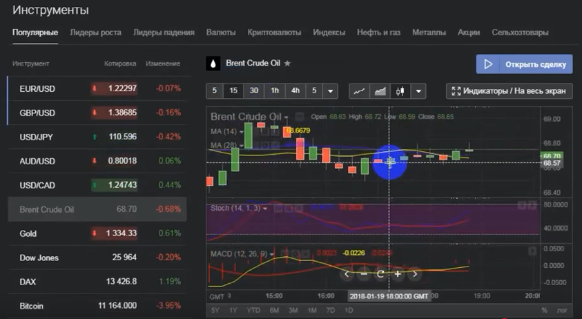 В своем ролике автор показывает процесс собственной торговли на бирже. Ориентируясь на технический анализ, он открыл сделку с нефтью Brent, используя кредитное плечо 1:500. Стоит заметить, что маржинальная торговля с таким мультипликатором крайне опасна. Она может привести к моментальной потере депозита.