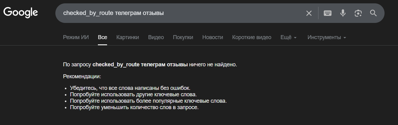 На момент проверки канал просуществовал два года, но ни один покупатель не оставил о нем отзыв, и хотя они есть в публикациях, доверия не вызывают, так как сообщения выложили сами владельцы. Гугл вообще не показывает никаких сайтов, если попытаться найти отзывы о канале в Телеграм «Проверено Маршрутом»,а это еще раз доказывает накрутку аудитории.