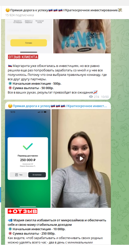 Зато на криптовалютных форумах отзывы о паблике «Прямая дорога к успеху Краткосрочное инвестирование» преимущественно негативные. Люди рассказывают, как после перевода денег их аккаунты заблокировали, а администратор винулав «чёрный список». Ещё есть случаи, где куратор лично писала пользователям с предложением заработать на депозите. Многие призывают быть осторожными и не работать с Ириной.