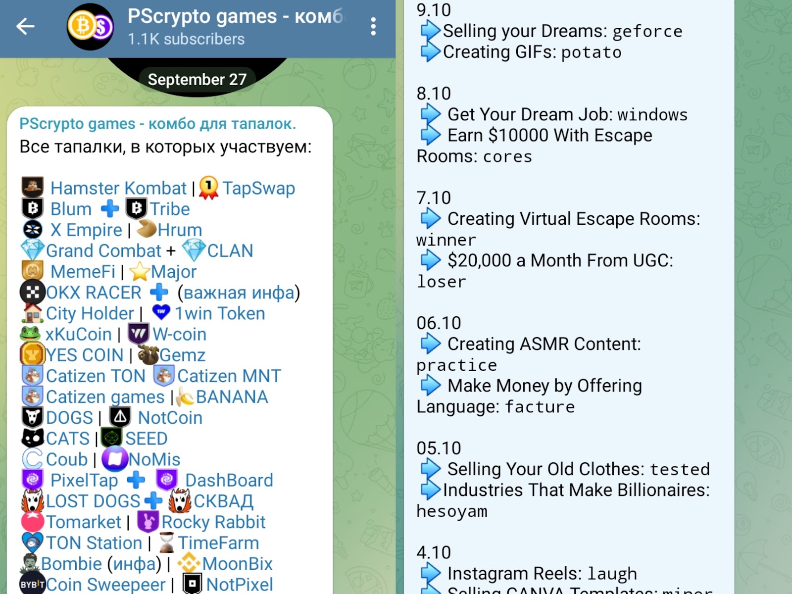 Телеграмм канал PScrypto Games Комбо для Тапалок работает с 27 сентября 2024 года. На него подписано 1.1k человек.