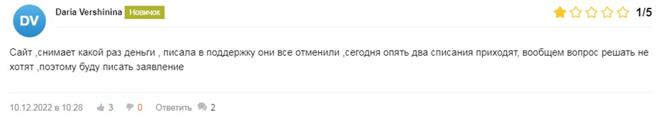 • У самого проекта плохая репутация. Пользователи жалуются на скам и сообщают, что бот попросту списывает средства без всякого основания. Лучше с ним не связываться если не хотите потерять деньги.