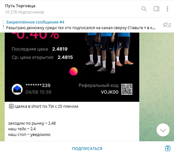 Самое печальное, что никакой внятной, верифицированной статистики по прибыльности его сигналов не представлено. Верить на слово анонимному трейдеру из Telegram – занятие для очень смелых криптанов. В общем, вся картина очень похожа на банальную схему по сливу подписчиков на партнерку, а ценность самих «сигналов» крайне сомнительна. Похоже, «Путь торговца» ведет аудиторию вовсе не к профиту, а прямиком в реферальную воронку.