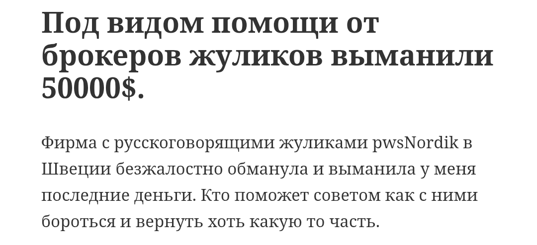 Отзывов о деятельности Pws Nordik на сторонних площадках достаточно, чтобы оценить перспективы сотрудничества с ними. Люди называют организаторов проекта мошенниками, рассказывают о вымогательстве денег и просят совета у сообщества.