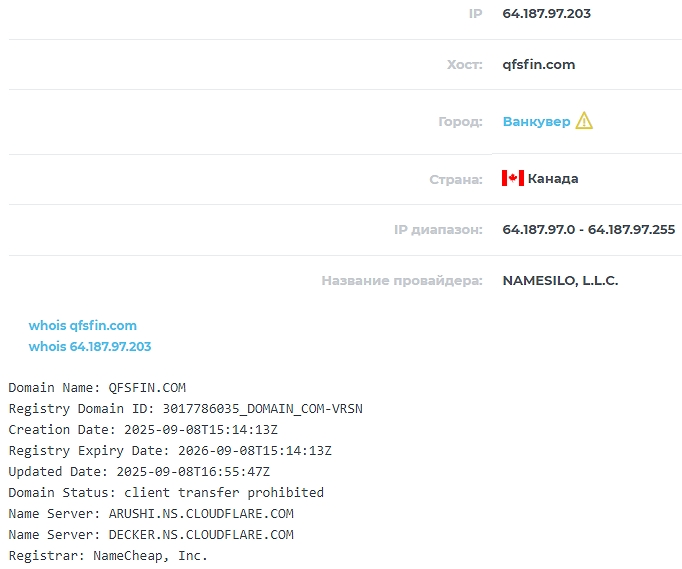 Криптокошелек Qfs Finance работает с 08.09.2025, его сайт зарегистрирован в Канаде, но в Сети пишут о том, что криптокошелёк Stellar и его токен $Lobstr известны минимум с января 2023 года. В магазине Google Play найдены отзывы о Lobstr FreshDesk com и за 2019 год., но о других доменах конторы нет данных.