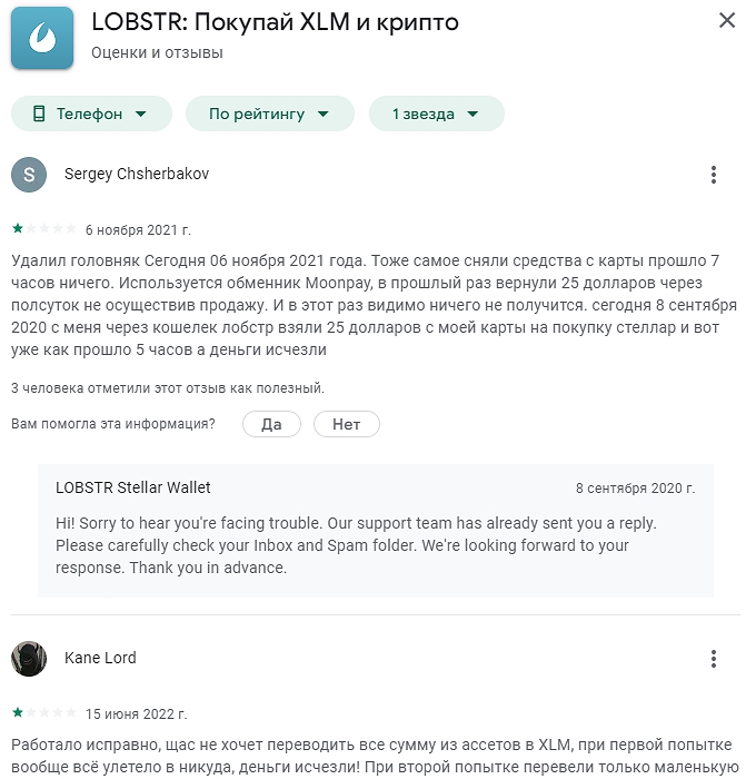 Расчеты с ее создателями можно считать опасными, ведь те не поддерживают пополнения и вывод в России. Сведения об этом скрыты на сайте Lobstr FreshDesk com, и даже при внесении крипты на баланс обходными путями есть риск попасть под блокировку.
