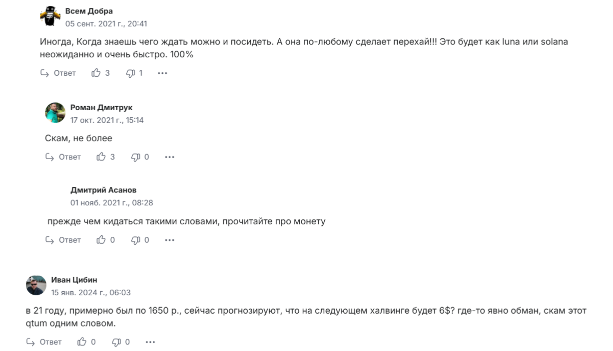 На форуме Investing com пользователи выражают различные мнения о Qtum. Некоторые отмечают разочарование в связи с падением цены токена, называя проект скамом.