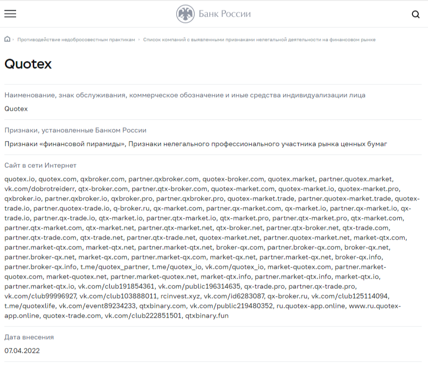 Стоит отметить, что работать Екатерина @ quotex ekaterina предлагает на бирже Quotex. Мы изучили информацию о данном ресурсе в интернете и узнали, что он с 2022 года занесен в черный список ЦБ РФ. И таких сомнительных моментов в деятельности автора очень много.