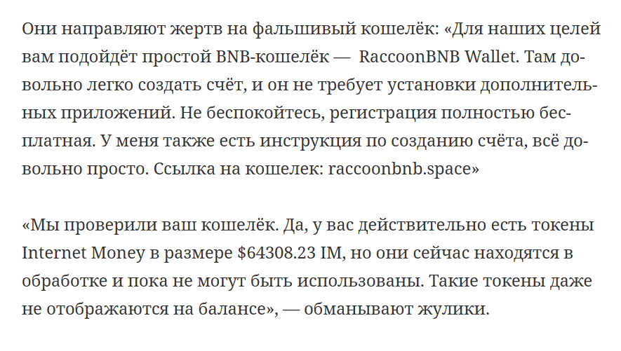 Каким способом их можно разблокировать, неизвестно, но вполне возможно, что для этого потребуются дополнительные платежи. Положительные отзывы о RaccoonBnb Wallet есть только на сайте проекта, но так как существует высокий риск их фальсификации, доверять подобным комментариям мы не советуем.