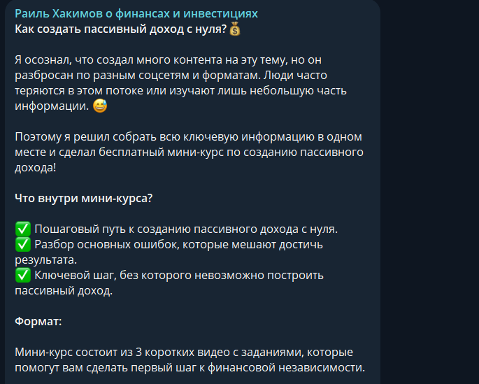 Мы рекомендуем с осторожностью работать с телеграмм-каналом Раиля Хакимова, поскольку несмотря на доступность материала, никаких гарантий его правдивости и качества нет, что может привести к потерям средств.
