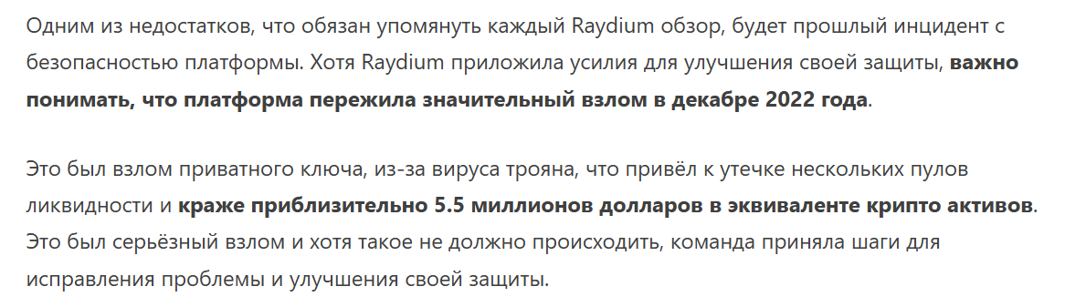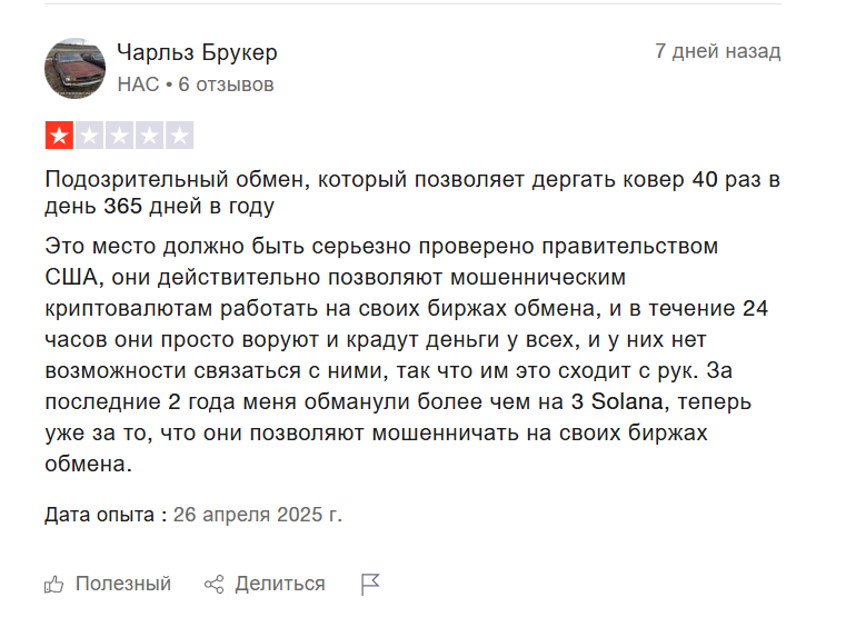 На децентрализованных площадках такое случается часто, но есть и другие комментарии, где пострадавшие обвиняют владельцев в потере денег. Многие отмечают ошибки в работе платформы, из-за которых у них пропали активы. Другие говорят, что, согласно ответам службы поддержки, сервис не берет на себя никаких обязательств. Причем эти отзывы о бирже Raydium написали в 2025 году, так что с предыдущим инцидентом по взлому они связи не имеют.