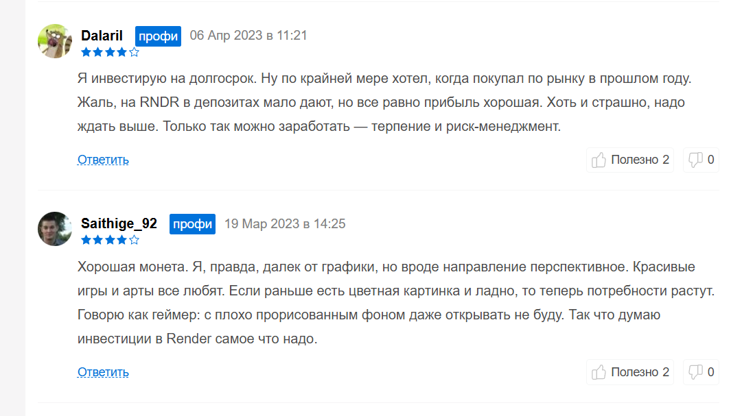 Отзывы трейдеров о работе с Render Network