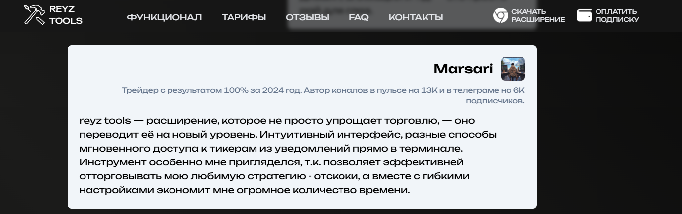К тому же на сайте Reyz Tools ru отзывы опубликовано непосредственно командой проекта, из-за чего проверить их на подлинность невозможно. На независимых площадках по неизвестным причинам комментарии о расширении Reyz Tools еще не появились.