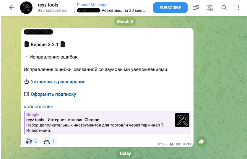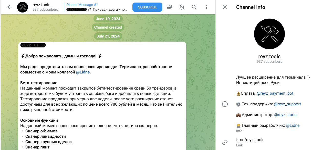 В канале ежедневно публикуются новые обновления. Команда не разрабатывает новые инструменты, а лишь занимается улучшением парсера новостей. По их словам он находит наиболее важные новости, но насколько они ценные неизвестно. Вероятнее всего Reyz Tools попросту копирует их из сторонних агрегаторов.