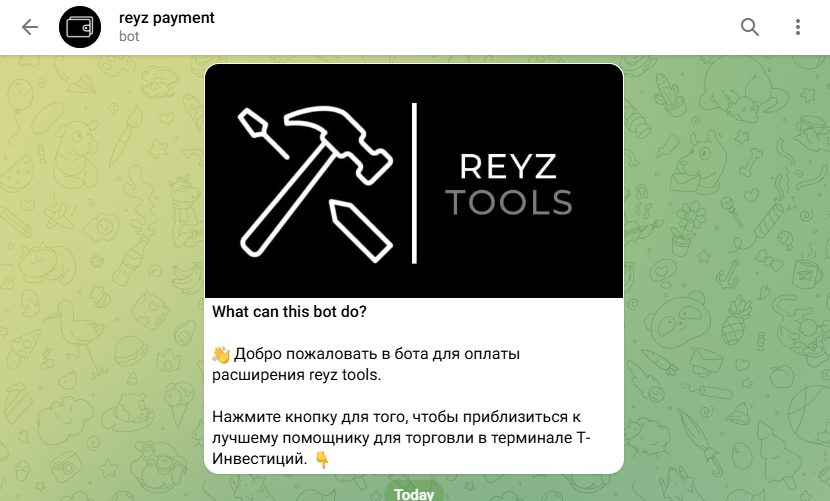 Для связи с технической поддержкой существует телеграм аккаунт Reyz Support. Для оплаты продукта необходимо использовать телеграм бота Reyz Payment bot, где также описываются основные виджеты внутри расширения.