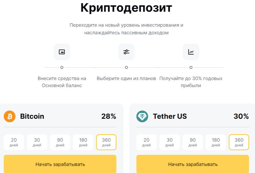 Скорее всего, биржа Razerbit пытается таким образом показать свою честность и авторитетность. Однако нет никаких гарантий, что она не пускает «пыль в глаза». Строгая проверка выглядит неправдоподобно рядом с отсутствующей лицензией.Помимо хранения и конвертации валют, на бирже «Разербит» можно заключать сделки с фьючерсами и работать на спотовом рынке. Также владельцы предлагают выгодно инвестировать средства на срок от 20 дней до года. Если вложить биткоин, то за год к депозиту прибавится 28%, по Tether доход за такой же период будет выше и составит 30%.