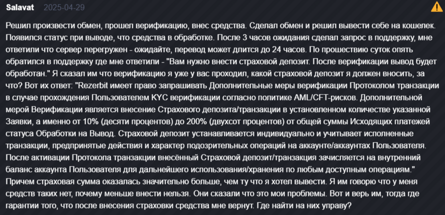 Исходя из обнаруженной информации, мы сделали вывод, что описываемую биржу нельзя назвать надежным местом для хранения криптоактивов и заработка на них. Мы не говорим, что «Резербит» на 100% скам, но не советуем связываться с этой площадкой.