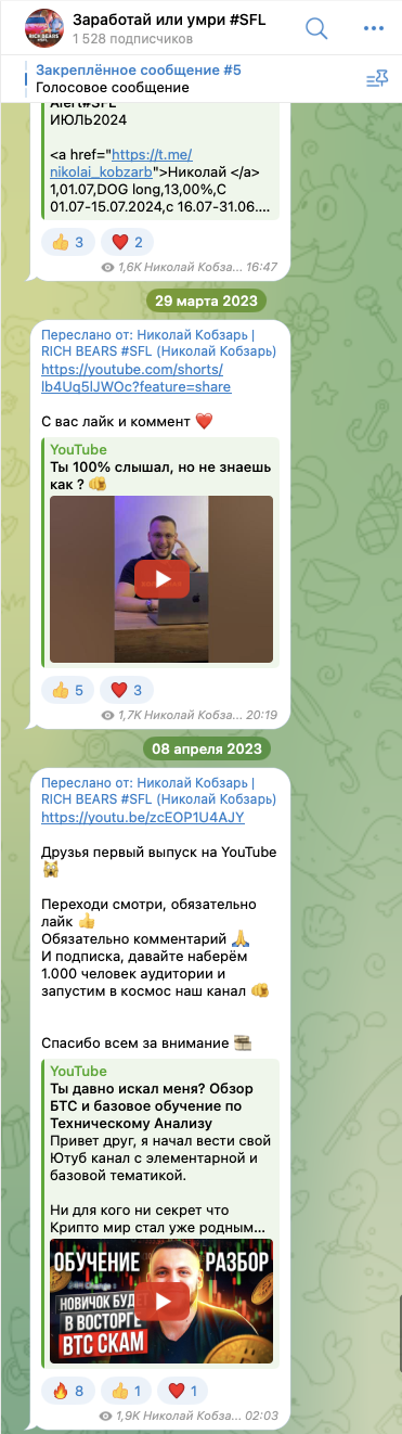 Кобзарь Николай – трейдер, который периодически создает, а затем внезапно забрасывает каналы, не предупреждая об этом уже сформированную аудиторию. Он никогда не предоставлял доказательств своей экспертности.