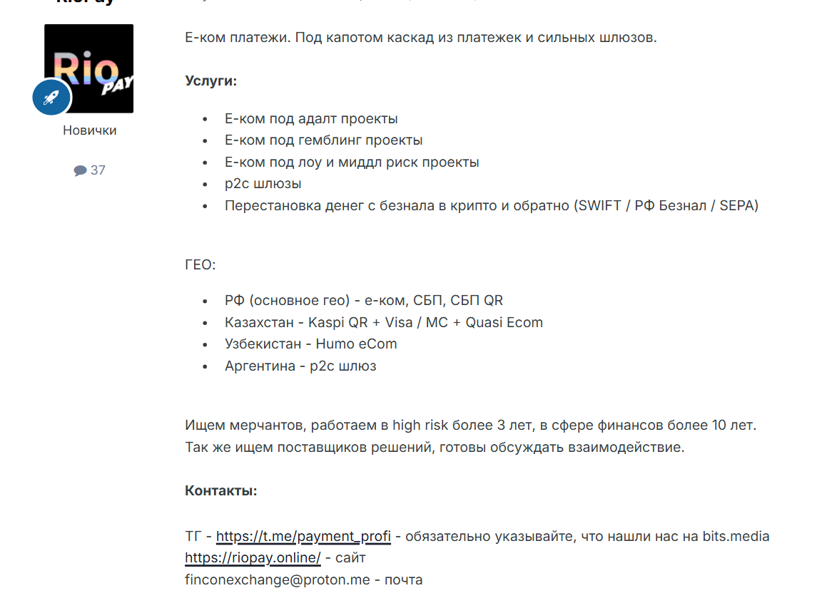 Помимо сайта проект презентован на форуме Bits Media, где владельцы пишут, что ищут трейдеров для обработки транзакций и партнеров.