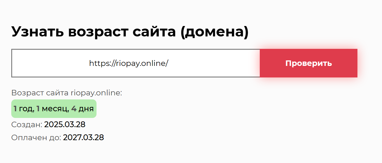 Больше на официальном сайте RioPay ничего не сказано. Не описан подробно функционал платформы, условия ее использования, лимиты, комиссии и прочие важные моменты. Нет информации о владельцах, не указаны реквизиты и документы компании. Домен сайта фирмы зарегистрирован год назад.
