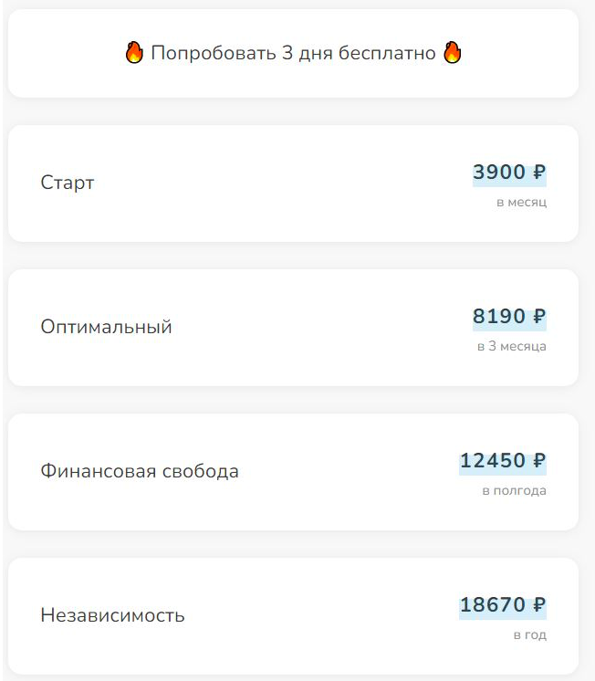 - тариф Финансовая Свобода на 6 месяцев за 12450 рублей;