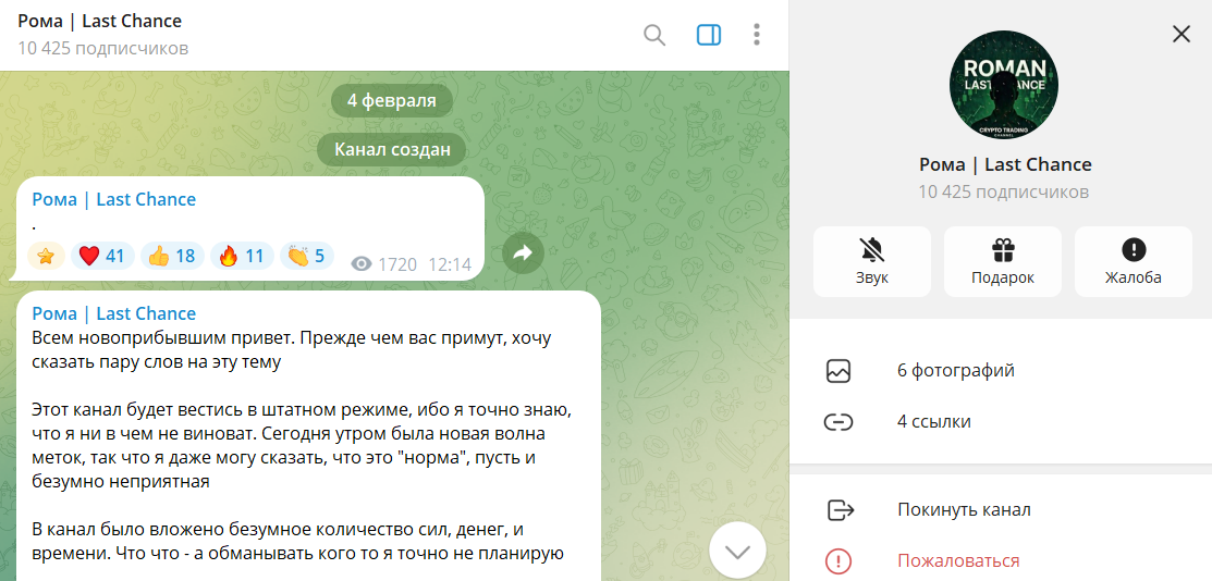 В обзоре проанализировали телеграмм-канал «Рома | Ласт Шанс», его репутацию в интернете. С учетом всех фактов резюмируем: