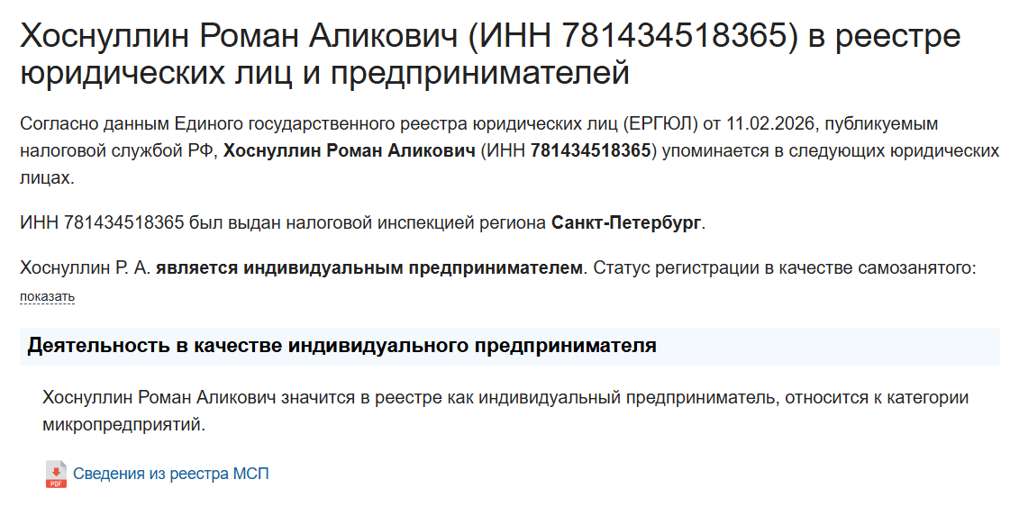 В обзоре сконцентрируемся на разборе бесплатного практикума «Выживший на Wildberries». Рекламный сайт представляет собой типичный продающий лендинг на 3-дневный воркшоп. Организатор – ИП Хоснуллин Роман Аликович. Мы проверили ИНН – данные действительны, но категория занятости не относится к образовательной деятельности.
