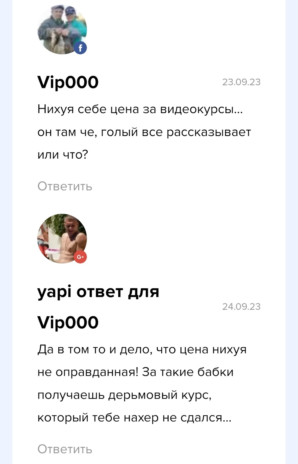 Другие клиенты поражаются стоимости курсов. Действительно, платный контент настолько дорогой, что очень сложно найти такие деньги, а уж тем более людям с низкой зарплатой. Учитывая, что курс наполнен водой и бесполезной информацией, мне становится ещё больше жаль Vip000 и Yapi в их ситуации.