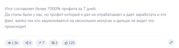 Инвестиционный блогер демонстрирует в сообществе статистику увеличения профита от участия в биржевых сделках. Трейдер утверждает, что имеет достаточный опыт в торговле для поддержания успешной стратегии трейдинга в стабильном состоянии.
