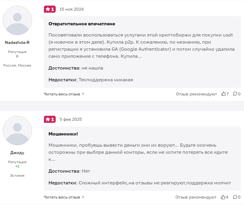 Также мы обнаружили много отрицательного пользовательского фидбека о бирже, на которую трейдер приглашает торговать.