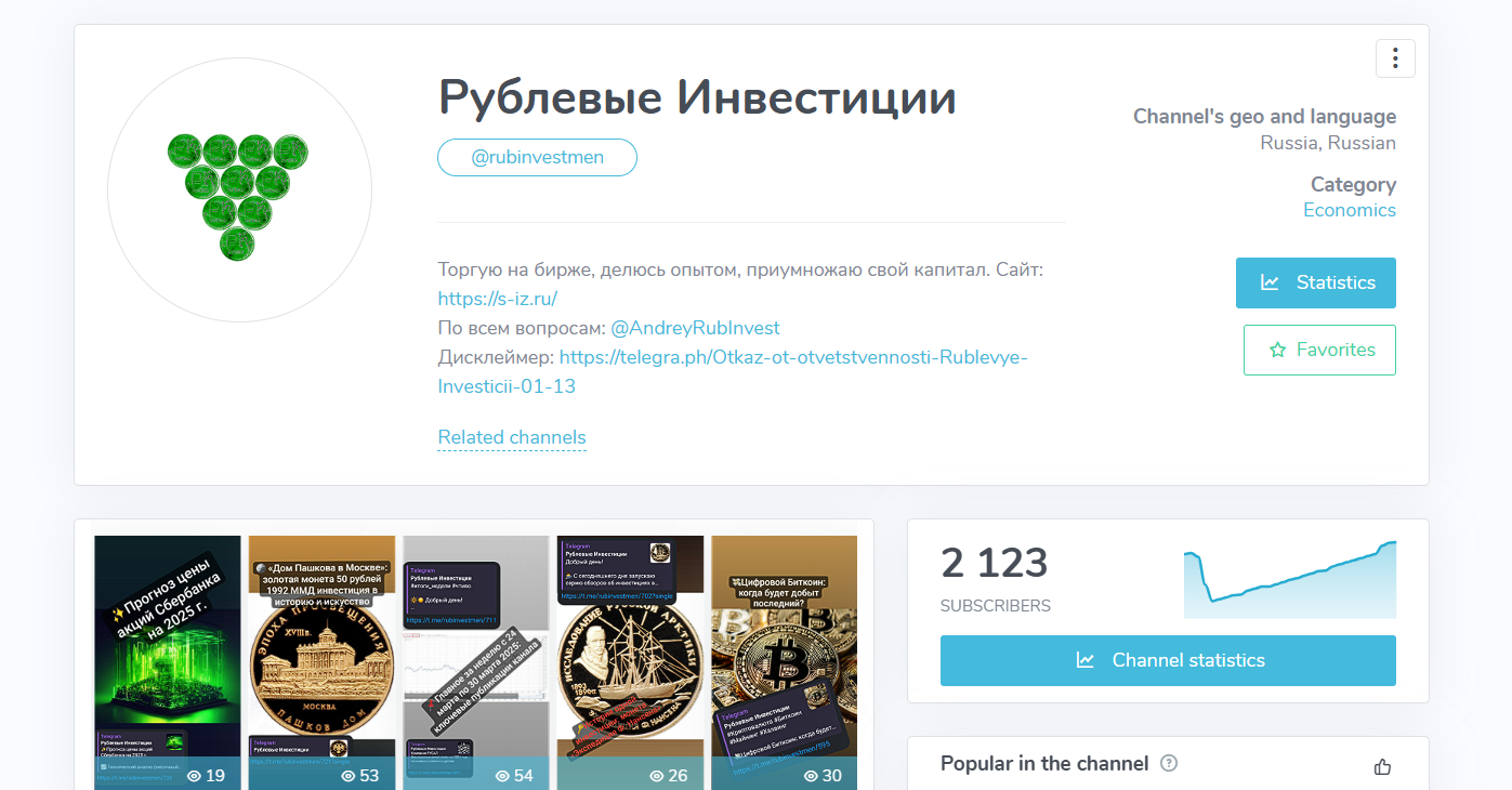 “Рублевые Инвестиции” телеграм канал (2.1К подписчиков) — это сжатая версия сайта: утренние дайджесты экономических новостей, короткие комментарии к рынку и редкие торговые идеи. В отличие от многих “закрытых” каналов, здесь можно оставлять комментарии, но живого обсуждения нет — видимо, аудитория пассивная. Посты выглядят профессионально (есть уровни для сделок, ссылки на источники), но масштабом не впечатляют.