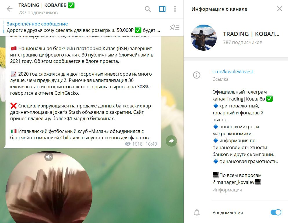 Руслан ведет свой канал в Телеграм, где выкладывает различные новости из мира криптовалюты, инвестирования, графики продаж, свои мысли и моменты из своей жизни. Также он приглашает всех пройти обучение и стать настоящим трейдером.