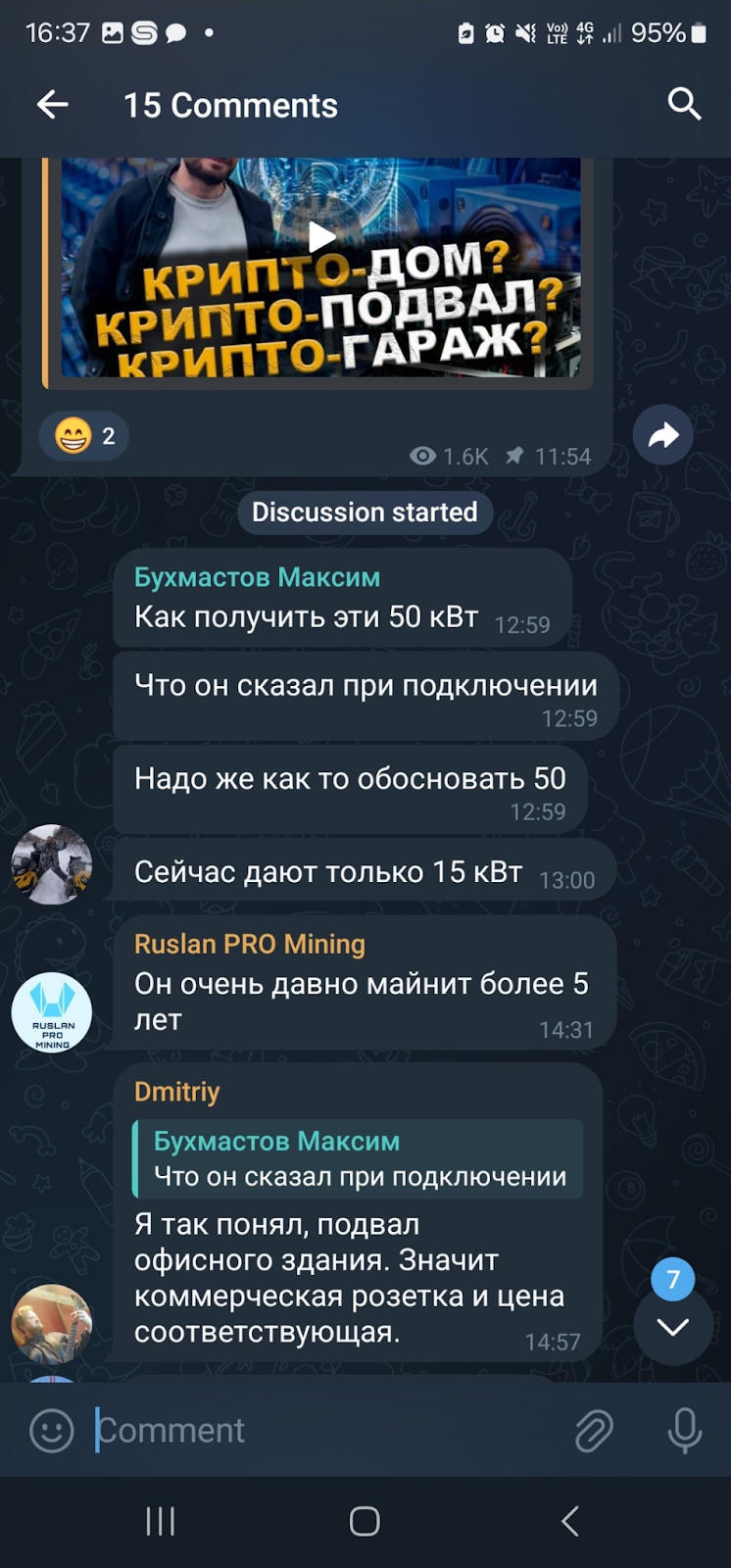 На каналах много сторонней рекламы и реферальных ссылок. Руслан также продает асики и предлагает размещать их среди своих контейнеров. В лоб он это не рекламирует, информация, как правило, в общих сведениях о каналах Ruslan Pro Mining.