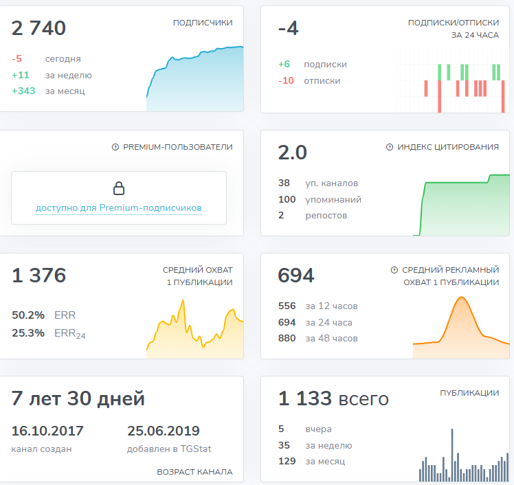 Хоть администратор канала имеет «зеленую галочку», это ни о чем нам не говорит. А вот статистика канала говорит о многом. Во-первых, по росту числа подписчиков понятно, что накруток здесь не было (скорее всего, но не факт), но пока автор писал полу-бред про бизнес, его канал был малоинтересен. Хоть никакую, но «популярность» он обрел после того, как был «переквалифицирован» в проект по инвестициям.