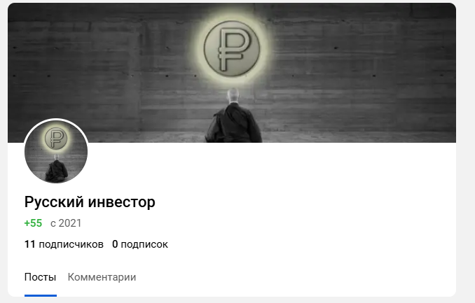 На этой площадке у инвестора 11 подписчиков и 55 плюсиков. Публикаций пара десятков, но просмотров мало — чуть более 10 на каждую. Комментариев нет.