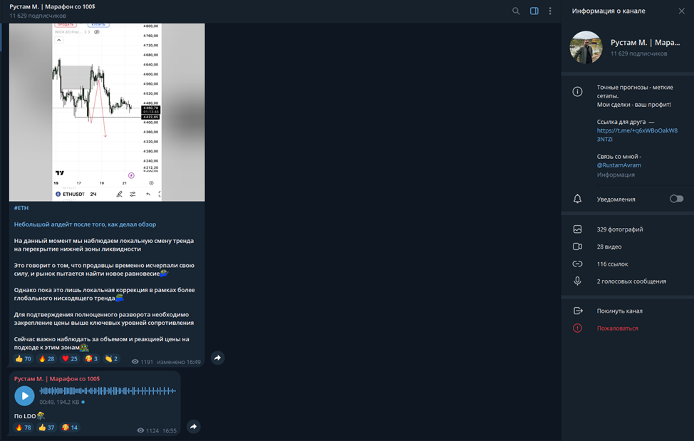 Обзор деятельности трейдера в Телеграме «Марафон со 100»: отзывы реальных пользователей и анализ деятельности RustamAvram